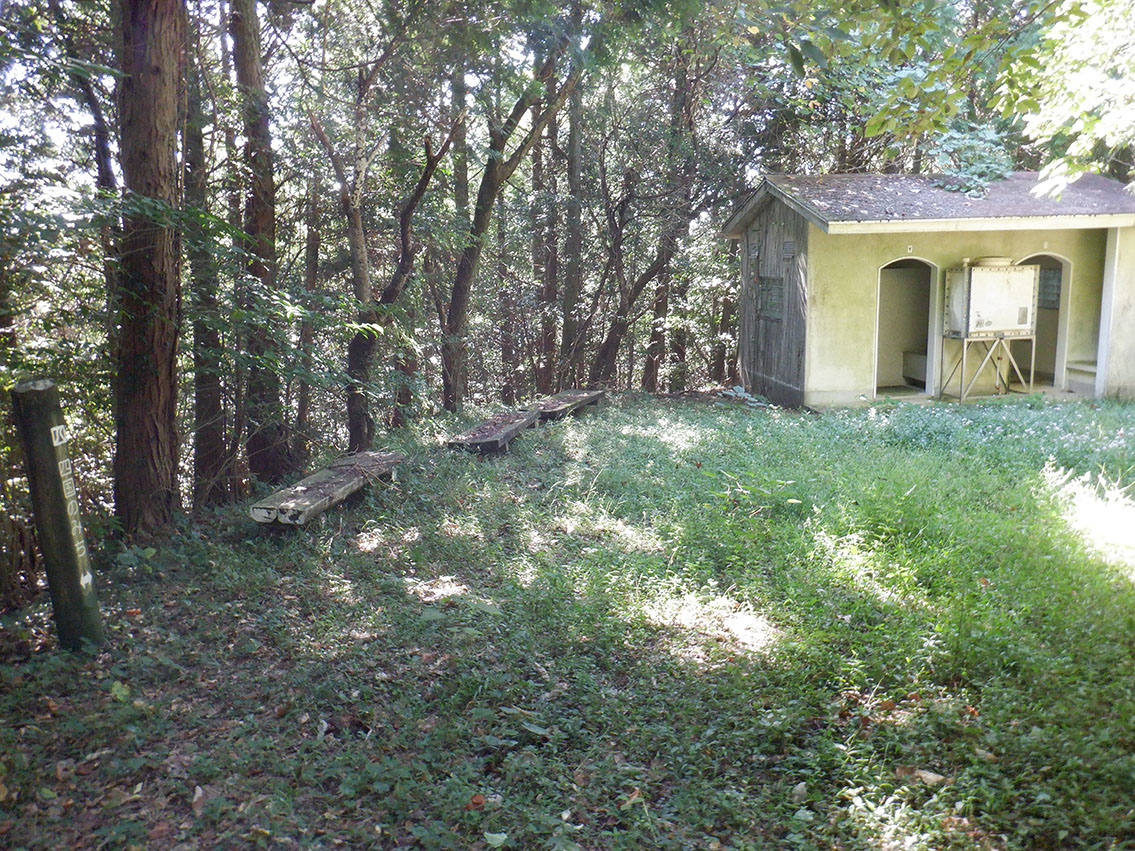 野福峠休憩地木漏れ日の中に、野福峠休憩地があります。終点まではもう少しですが、ベンチで一息つきましょう。