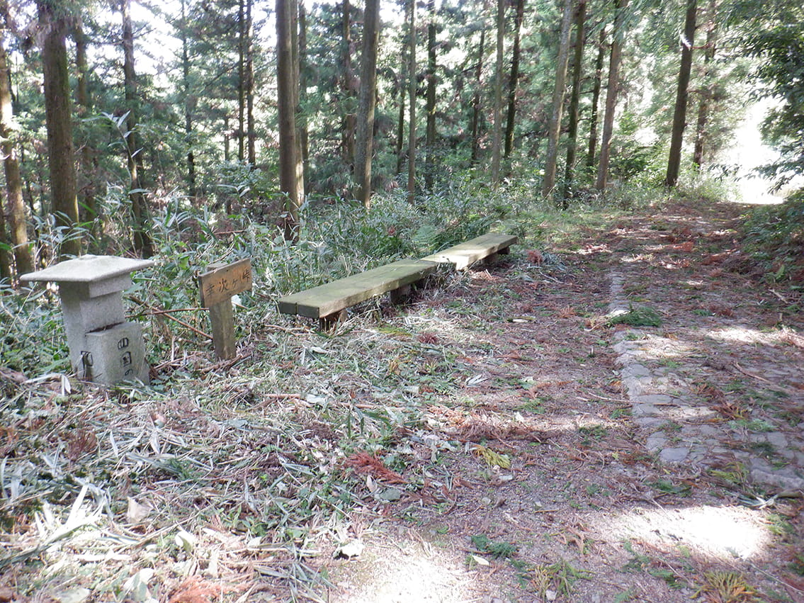幸次ヶ峠休憩地標高が525mあるこの峠は、旧松山市と旧北条市の境界にありますが、昭和30年以前、この峠一帯は、旧北条市域を中心とする風早郡の河野村という一つの村でした。風早地方は、平安末期の頃から豊臣秀吉の四国征伐までの間、河野氏一族によって治められており、この地区の人々は、旧北条市との関係の方が深かったようです。また、実際、車のなかった時代に、この場所からそれぞれの市の中心地までは、北条方面へ出ていく方が早かったようです。この峠に到着すると、木漏れ日の中にベンチがありますので、これから高縄山に向かって山道を登る前に、一休みしてはどうでしょうか。