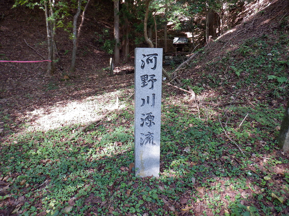 河野川源流碑高縄山の近くにある河野川の源流碑です。ここが北条地区を流れる河野川の原点です。この小さくて綺麗な水が瀬戸内海に向かって流れて行きます。