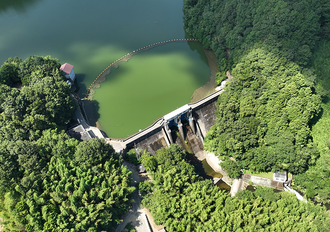 長柄ダム長柄ダムは昭和28年に完成した多目的ダムです。高松市塩江町の内場ダムとともに古く、本県のダムの草分け的な存在です。ダム湖のほとりにはサクラの並木が続き、周辺の山々に自生するヤマザクラとあわせて、4月上旬にはサクラの里と化します。このダムによって形成された人造湖は「長柄湖」と名付けられ、自然豊かな散策コースとして親しまれています。