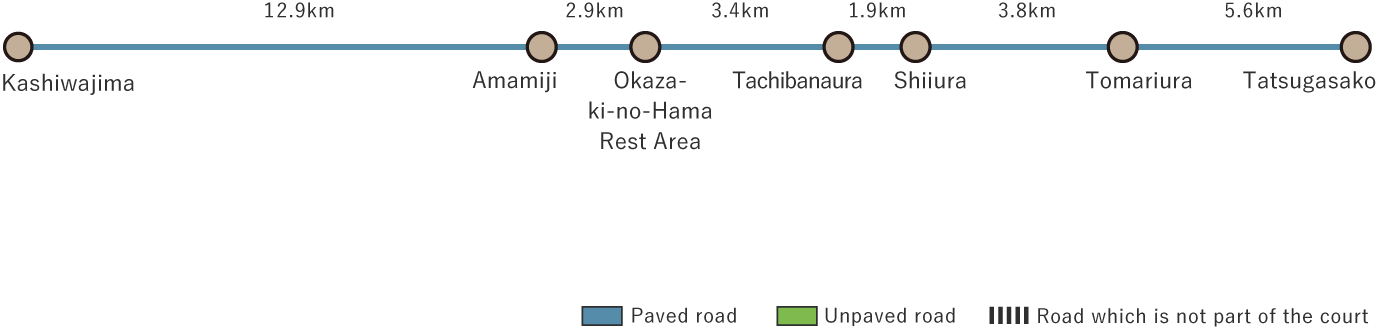 The Okazaki-no-Hama Rest AreaThe Okazaki-no-Hama Rest Area uniquely combines a rest area and observation deck in one spot. From the observation deck, enjoy a spectacular panorama, including Cape Kannonzaki jutting into the Bungo Channel and Uguru Island, offshore from Sukumo City.